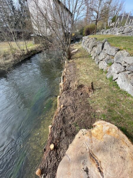 Darüber hinaus profitieren auch Tiere und Pflanzen von der Maßnahme. Die Weidenfaschinen schaffen strukturreiche, naturnahe Lebensräume entlang des Gewässers. Insekten finden dort Schutz und Nahrungsquellen, während Vögel das dichte Geäst als Brut- und Rückzugsraum nutzen. Auch Amphibien und Kleinsäuger profitieren von den feuchten, geschützten Bereichen am Ufer, die ihnen Deckung und günstige Lebensbedingungen bieten. Insgesamt wird so die Artenvielfalt an der Würm gefördert und der ökologische Wert des Gewässerraums nachhaltig gestärkt.